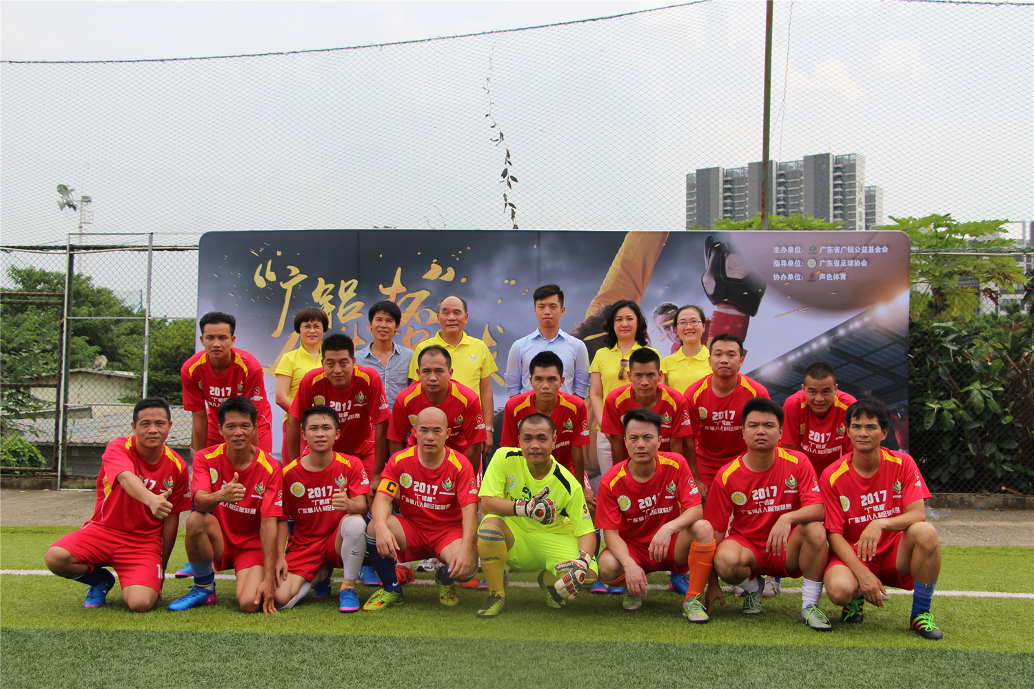 由廣東省足球協(xié)會(huì )擔任賽事指導,廣東省廣鋁公益基金會(huì )獨家冠名贊助并主辦,廣州聲色體育承辦的2017“廣鋁杯”廣東省八人制足球聯(lián)賽開(kāi)球儀式于6月24日在拾號體育公園隆重舉行。