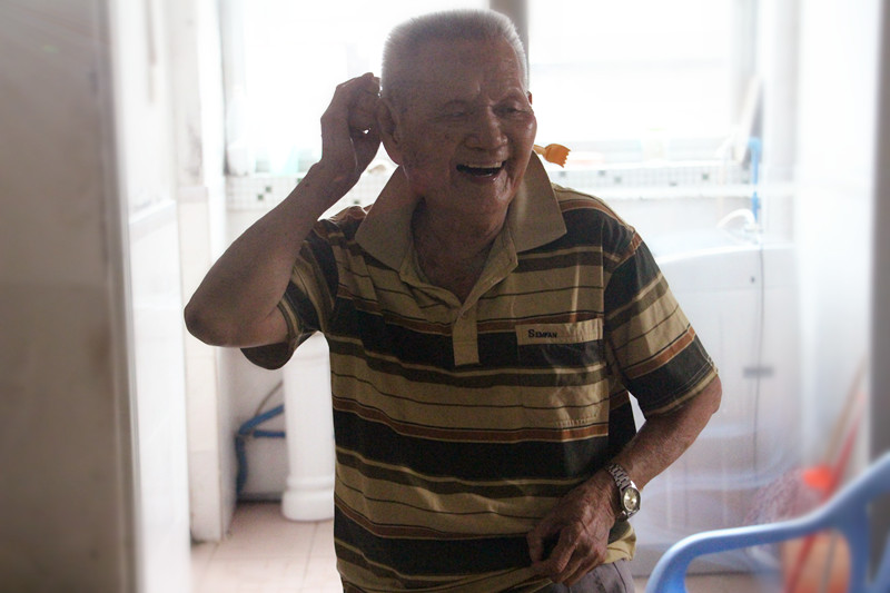 “我九十六歲了,我們以前很窮,很辛苦的,每天挑泥做苦力,就為了賺一口飯吃。你們讀大學(xué),做一份好工作,真的很叻(棒)。有空就帶禮物來(lái)送給我們,唱歌跳舞給我們這些老人看,你們真好,謝謝你們!”