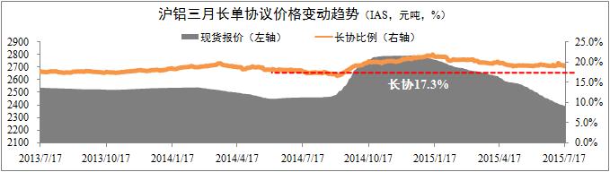 滬鋁三月長(cháng)協(xié)比例繼續回落。監控數據顯示,滬鋁三月長(cháng)協(xié)比例繼續保持回落趨勢,且與氧化鋁現貨報價(jià)之間的差距進(jìn)一步拉大。截至7月17日,滬鋁三月長(cháng)協(xié)比例逐步回落至19.1%,同比下降0.2個(gè)百分點(diǎn),月化波動(dòng)區間為19.1%-19.8%。從下滑區間幅度上看,滬鋁三月結算價(jià)月均下滑0.08%,氧化鋁報價(jià)下滑0.14%,在長(cháng)協(xié)比例相對穩定的前提下,預計氧化鋁價(jià)格將逐步趨穩。
