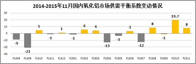 國內供需情況。產(chǎn)能方面,11月全國氧化鋁建成產(chǎn)能約為6811.5萬(wàn)噸,運行產(chǎn)能5743萬(wàn)噸,開(kāi)工率為84.31%,環(huán)比下降了3.3個(gè)百分點(diǎn);產(chǎn)量方面,11月國產(chǎn)氧化鋁472萬(wàn)噸,環(huán)比下降了5.37%。從平衡系數上看,11月國產(chǎn)氧化鋁有近8萬(wàn)噸的富余,較上月下降近12萬(wàn)噸,主要原因包括:一是電解鋁減產(chǎn)導致了摩擦性需求過(guò)剩;二是氧化鋁企業(yè)逐漸落實(shí)了減產(chǎn)計劃。