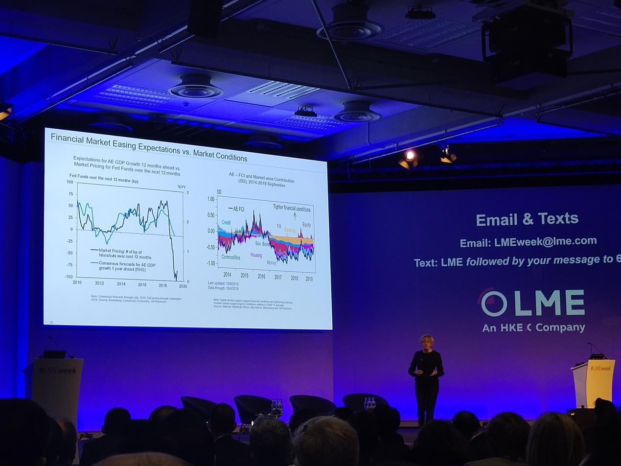 20191028日,一年一度的LME WEEK在英國倫敦正式召開(kāi)。上海金屬網(wǎng)對本次LME WEEK進(jìn)行全程報道,本文將為您帶來(lái)LME金屬研討會(huì )上的花旗銀行全球首席經(jīng)濟學(xué)家Catherine Mann關(guān)于“全球經(jīng)濟展望”的演講: