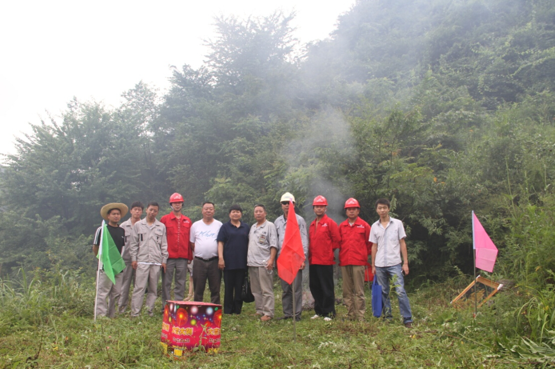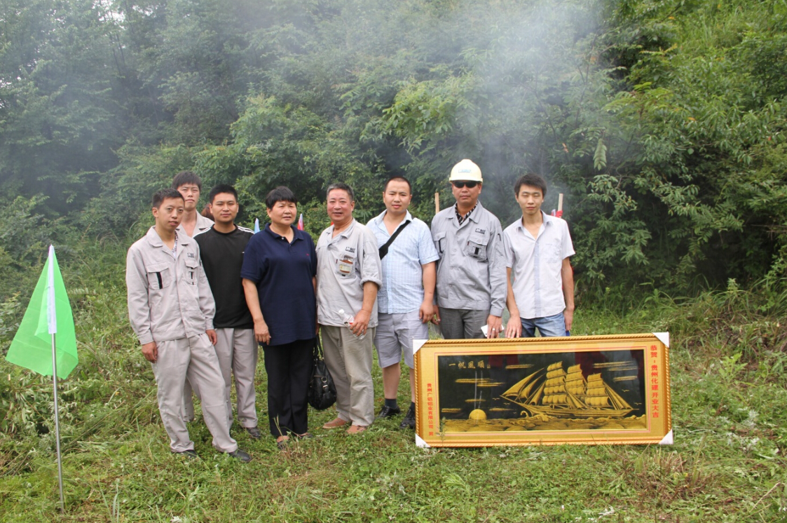 在公司羅敏總工程師的帶領(lǐng)下,貴州公司工程處、礦山處等11位同事參加了開(kāi)工典禮。據施工單位——貴州化工建設公司的龍總介紹,他們6點(diǎn)半從貴陽(yáng)出發(fā),8點(diǎn)多抵達礦山,當地的許多村民早早就帶著(zhù)鐵鏟、鐮刀和砍材刀等農具在那里等候著(zhù)工程開(kāi)工。在大家的齊心協(xié)力下,不一會(huì )兒工夫就在荊棘的叢林里開(kāi)出一片空地來(lái)。10點(diǎn)整,開(kāi)工儀式準時(shí)舉行。儀式上,大家一起為礦山的順利建設祈禱、祝福。儀式結束后,大家齊聚到村長(cháng)家,和100多位村民一齊慶賀本次開(kāi)工典禮的圓滿(mǎn)完成。