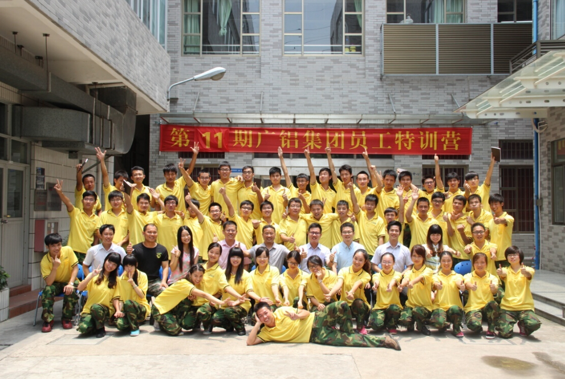 完成了5的內部培訓后,為了讓新入職的大學(xué)生更快地由學(xué)生轉變?yōu)槁殘?chǎng)人,公司統一安排了他們到白云學(xué)院進(jìn)行了為期14天的全封閉式委外培訓。在這期間,通過(guò)軍訓、大大小小的團隊游戲、及商務(wù)禮儀培訓課、職業(yè)生涯規劃課等內容,在增強大學(xué)生們的團隊合作精神及企業(yè)歸屬感的同時(shí),讓他們進(jìn)一步認識了廣鋁的企業(yè)文化,也更加認同了廣鋁的企業(yè)文化。
