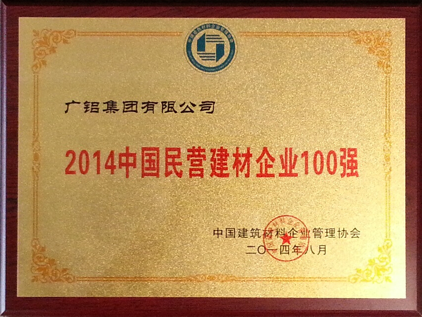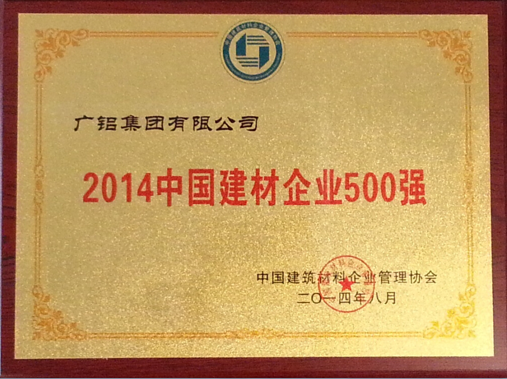 近日,由中國建筑材料企業(yè)管理協(xié)會(huì )組織召開(kāi)的“2014中國建材企業(yè)發(fā)展論壇暨2014中國建材企業(yè)500強、民營(yíng)建材企業(yè)100強、最具成長(cháng)性建材企業(yè)100強發(fā)布會(huì )”在京召開(kāi)。繼2013年喜獲“中國建材企業(yè)500強”、“中國民營(yíng)建材企業(yè)100強”兩項榮譽(yù)后,廣鋁集團憑借驕人的成績(jì)、迅猛地發(fā)展勢頭再攬這兩項殊榮,并且在“中國建材企業(yè)500強”排名中,位列第37位,在“中國民營(yíng)建材企業(yè)100強”排名中,位列第18位。
