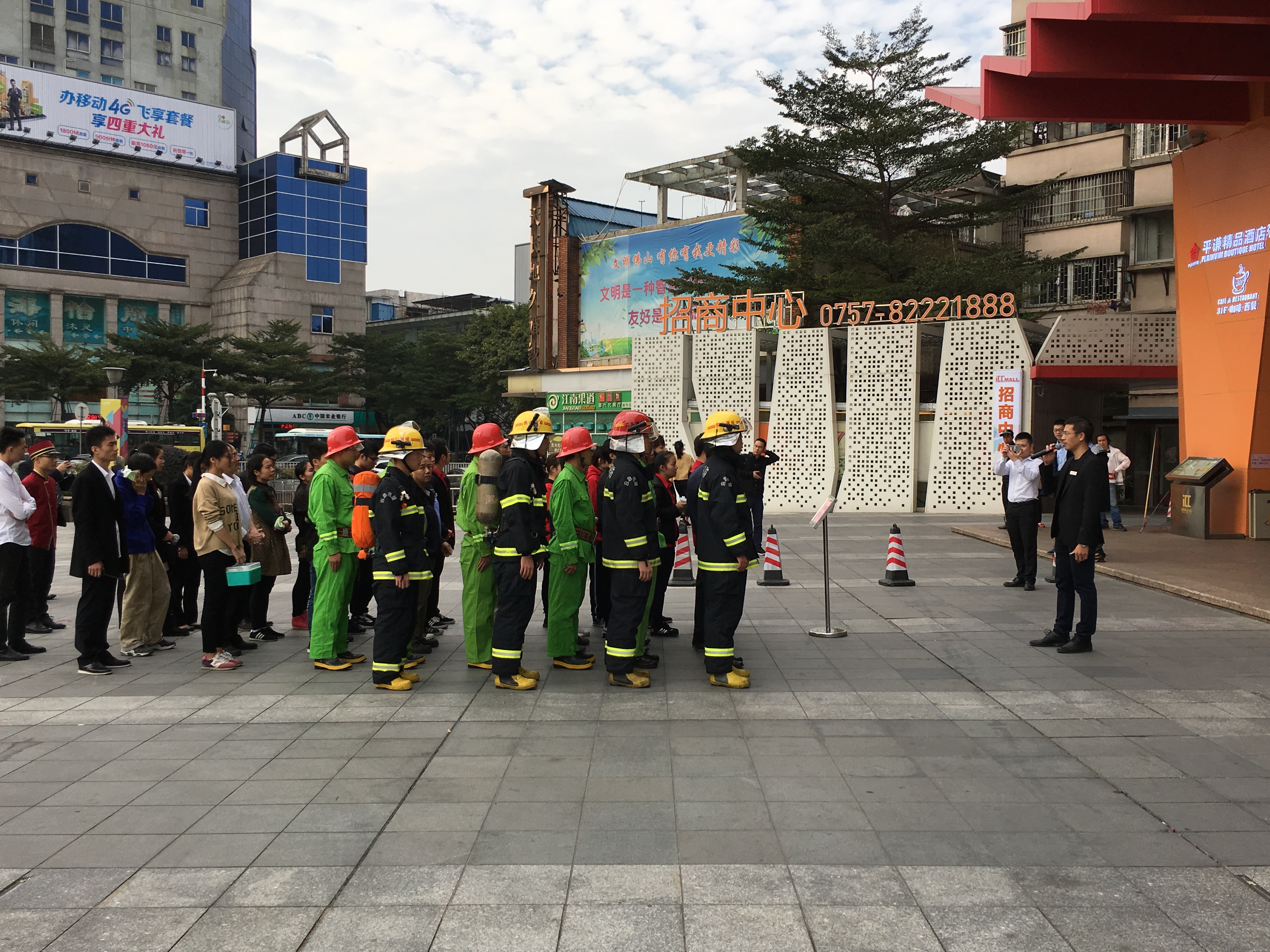 本次演練模擬了在ICC國際商業(yè)中心4層大洋時(shí)代影院4號廳發(fā)生突發(fā)性火災的應急處置程序。下午15:00時(shí),消防控制中心啟動(dòng)消防廣播與消防警鈴,疏散組2分鐘內把影院顧客安全有序的從消防樓梯疏散到首層廣場(chǎng)。滅火組與搶救組隊員迅速趕到現場(chǎng),禪城消防中隊也在接到報警后3分鐘到達現場(chǎng)開(kāi)展滅火救援。
