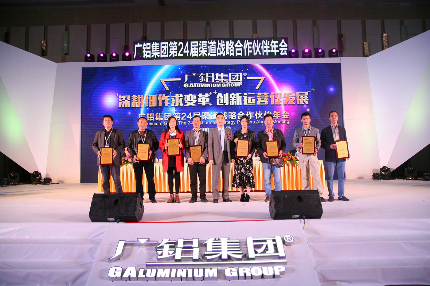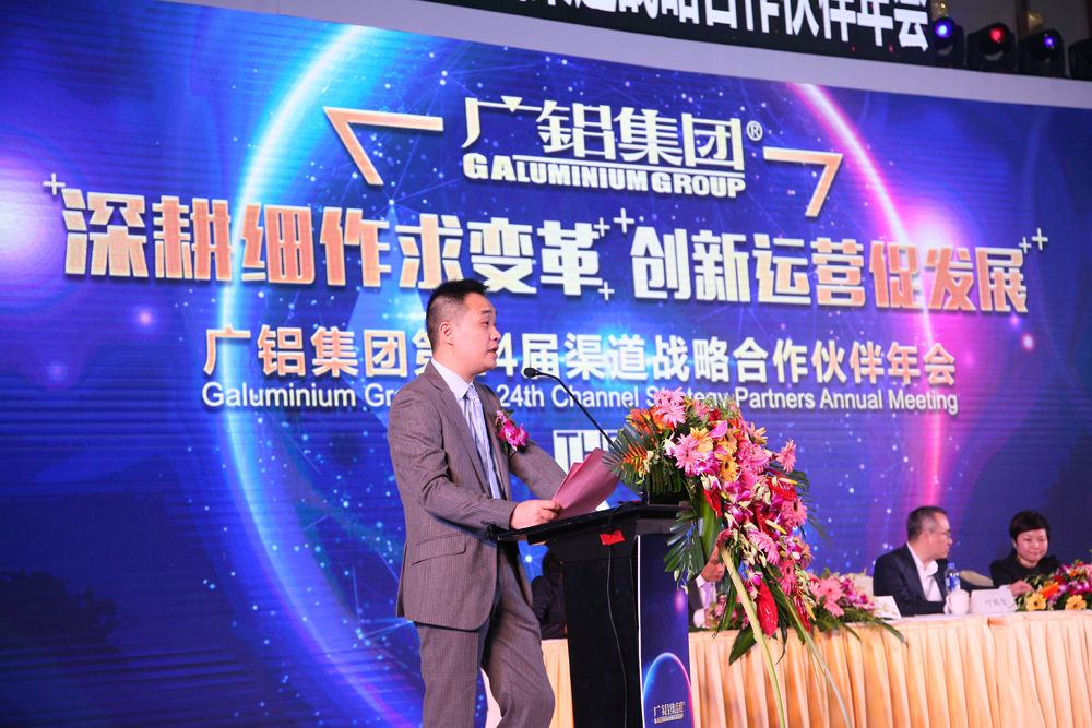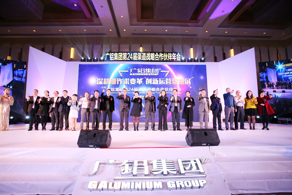 廣鋁集團董事長(cháng)葉鵬智、廣東廣鋁鋁業(yè)公司執行董事董小雷、總經(jīng)理黎柏松、營(yíng)銷(xiāo)總經(jīng)理李鋇、營(yíng)銷(xiāo)總經(jīng)理占振德、總工程師劉煌萍、生產(chǎn)總經(jīng)理助理文慶、廣鋁公益基金會(huì )秘書(shū)長(cháng)周楠等領(lǐng)導與來(lái)自全國各地近500位渠道戰略合作伙伴歡聚一堂,共商發(fā)展大計。
