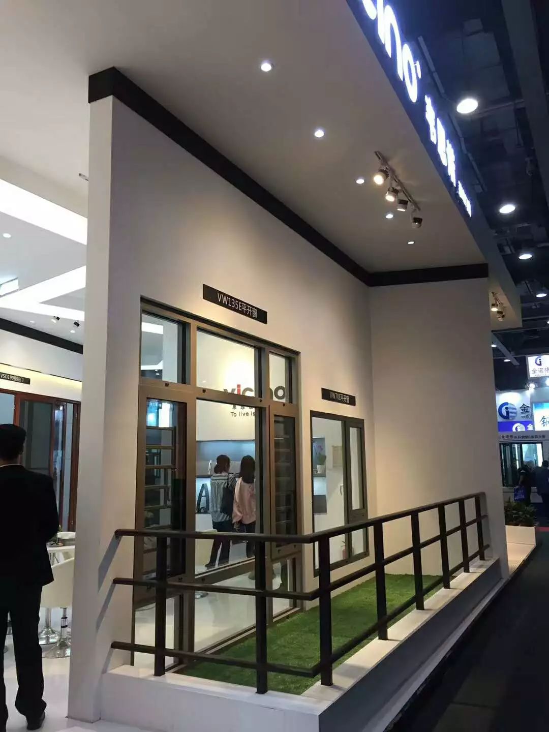 廣鋁集團本屆展會(huì )設計簡(jiǎn)潔高端,以韋思諾vicino品牌為主,其中有隔熱平開(kāi)門(mén)、節能平開(kāi)窗、隔熱提升推拉門(mén)、推拉窗等,型材簡(jiǎn)潔而不失穩重,給人一種大氣而安全牢固的溫馨感,得到了眾多買(mǎi)家的認可和關(guān)注。