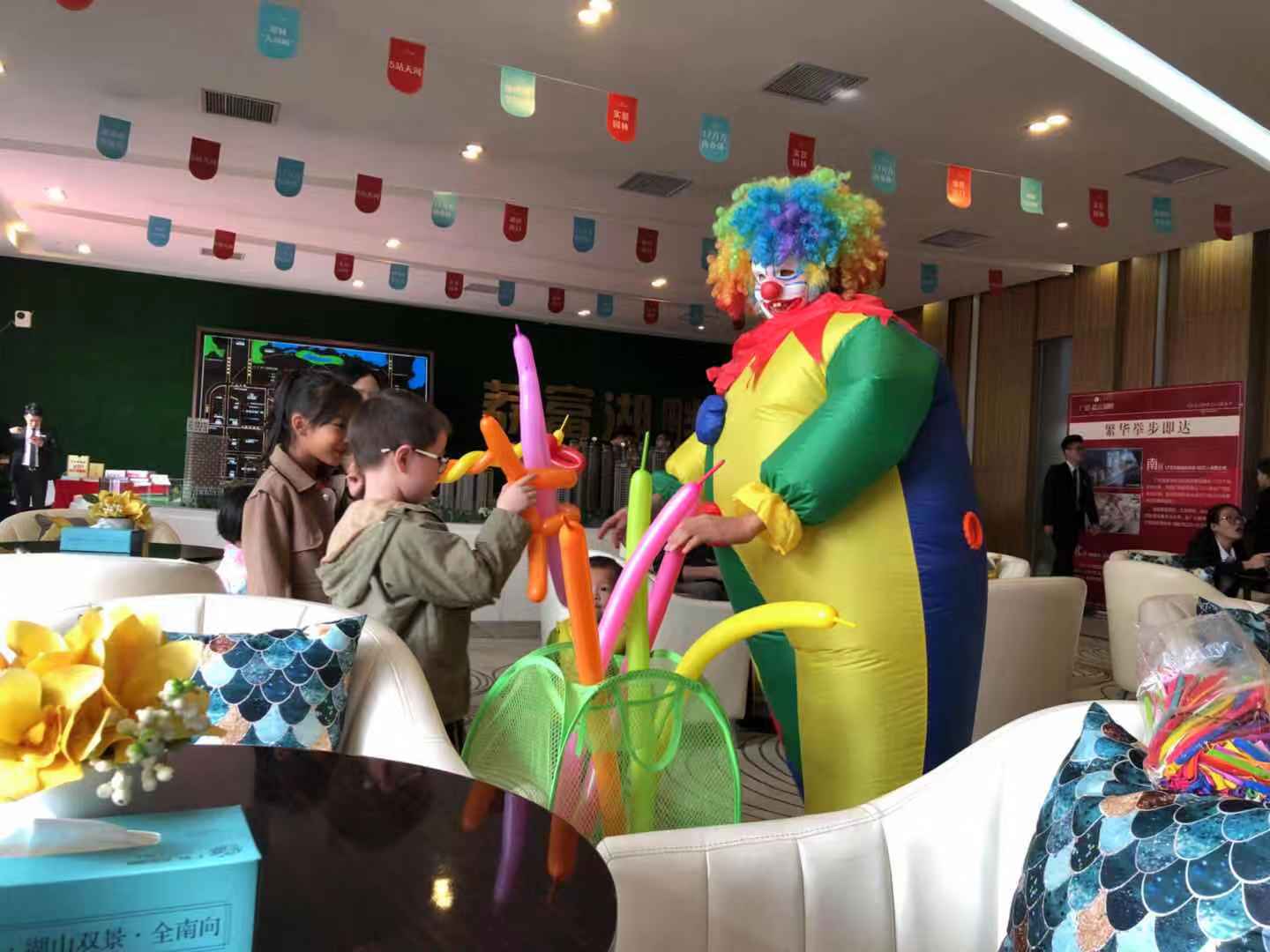11月24-25日,荔富湖畔銷(xiāo)售中心舉行了銅鑼燒diy+翻糖蛋糕diy+花式小丑表演活動(dòng),吸引大批業(yè)主及現場(chǎng)客戶(hù)到場(chǎng)參與,小丑哥哥不出十秒就把一個(gè)長(cháng)長(cháng)的氣球捏成一只可愛(ài)的小狗,一會(huì )又捏成一個(gè)叮當貓,小朋友們爭先恐后圍著(zhù)小丑哥哥,拿著(zhù)捏好的小氣球跑來(lái)跑去,像是在炫耀自己的成果,歡聲笑語(yǔ)遍布著(zhù)整個(gè)銷(xiāo)售中心。攤位上的美食小哥哥小姐姐也忙得不亦樂(lè )乎,家長(cháng)們帶著(zhù)小朋友坐在桌子前,拿著(zhù)工具及材料,在小姐姐指導下,做出了美味可口的銅鑼燒與翻糖蛋糕,濃濃的香味在銷(xiāo)售中心彌漫。