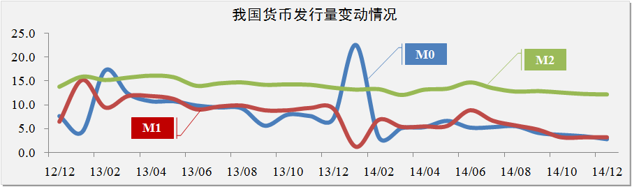 貨幣市場(chǎng)方面。2014年度我國M1的回落速度明顯高于M2的回落速度,表明銀行的定期存款增加,市場(chǎng)交易活力下降。綜合分析近年來(lái)我國貨幣發(fā)行量,2014年度貨幣發(fā)行量同比減少35%,但由于我國基礎貨幣流向存在不均衡特點(diǎn),穩健的貨幣政策在抑制投資過(guò)熱的同時(shí),也加劇了部分行業(yè)市場(chǎng)出現通貨緊縮的風(fēng)險。研究認為,2015年央行將在穩健的基礎上進(jìn)一步強化定向寬松貨幣政策,并將在銀行業(yè)以及制造業(yè)方面會(huì )有所寬松舉措。