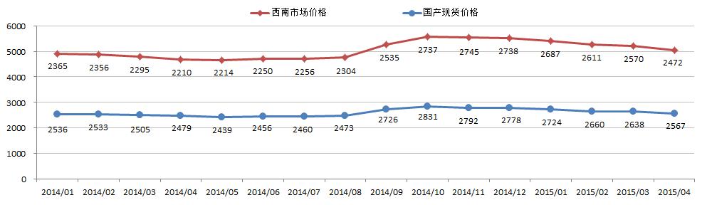 國內氧化鋁現貨交易市場(chǎng)趨于下跌。4月份上期所三月期鋁結算價(jià)加權平均值為13238.94元/噸,以17.3%作價(jià)4月份氧化鋁長(cháng)單價(jià)為2275.02元/噸。1-4月份國內氧化鋁現貨價(jià)格和西南市場(chǎng)價(jià)格持續處于下跌趨勢,4月份下跌幅度分別為71元/噸、98元/噸。再加上部分地區氧化鋁現貨價(jià)格逐步接近長(cháng)單比例價(jià),并且氧化鋁企業(yè)利潤空間急劇縮水并貼近成本。預計氧化鋁市場(chǎng)將會(huì )迅速恢復理性走勢,價(jià)格也將止跌企穩。