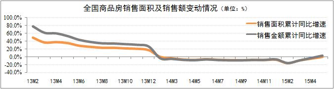 全國商品房銷(xiāo)售市場(chǎng)明顯回暖。國家統計局統計數據顯示:5月份全國商品房銷(xiāo)售面積累計增速同比下降0.2%,降幅環(huán)比收窄4.6個(gè)百分點(diǎn);銷(xiāo)售額實(shí)現2014年初以來(lái)首次正增長(cháng),累計同比增速為3.1%。銷(xiāo)售市場(chǎng)回暖主要體現在40個(gè)重點(diǎn)城市,非重點(diǎn)城市的投資開(kāi)發(fā)及銷(xiāo)售增速仍呈現下滑趨勢。研究認為,銷(xiāo)售市場(chǎng)回暖的主要原因在于國家政策調控作用引導了市場(chǎng)預期的轉變。