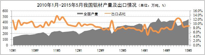 鋁材業(yè)務(wù)平穩增長(cháng)。統計數據顯示,5月份國內鋁材產(chǎn)量456萬(wàn)噸,環(huán)比增長(cháng)6.8%;鋁材出口41萬(wàn)噸,環(huán)比增長(cháng)7.9%,占鋁材總產(chǎn)量的9%,占比環(huán)比略有上升。出口份額的增長(cháng)即得益于國際市場(chǎng)經(jīng)濟的復蘇預期,得益于財政部取消部分鋁產(chǎn)品15%的關(guān)稅政策。取消關(guān)稅的部分鋁材包括:非合金鋁條、桿;截面周長(cháng)≥210mm的鋁合金制條、桿;截面周長(cháng)<210mm的鋁合金條、桿。