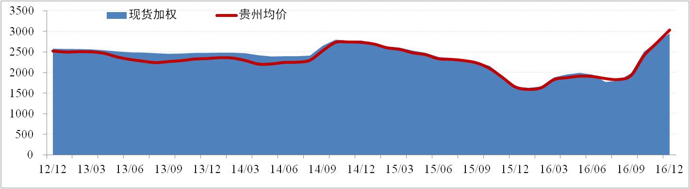 全國現貨價(jià)格方面,12月份國內氧化鋁現貨價(jià)格的上行逐漸進(jìn)入平臺期,西南地區氧化鋁價(jià)格反超北方地區價(jià)格。全國氧化鋁現貨加權價(jià)為2,955元/噸,環(huán)比上浮7.77%。貴州現貨方面,氧化鋁現貨加權價(jià)為3,035元/噸,環(huán)比上浮11.34%。12月份氧化鋁價(jià)格主要受電解鋁新產(chǎn)能持續釋放導致氧化鋁供應略緊,以及山西重慶氧化鋁環(huán)保檢查影響。