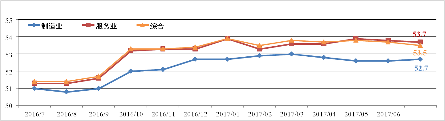 HIS  Markit與摩根大通發(fā)布的全球PMI數據顯示,7月全球綜合PMI為 53.5%,較上月下降0.2個(gè)百分點(diǎn)。其中,全球制造業(yè)PMI為52.7%,較上月升 高0.1個(gè)百分點(diǎn);全球服務(wù)業(yè)PMI為53.7%,較上月下降0.1個(gè)百分點(diǎn)。