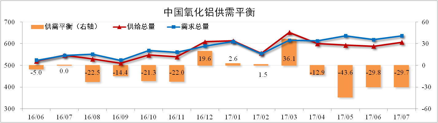 分析認為:下游電解鋁去產(chǎn)能政策執行程度超出市場(chǎng)預期將削弱氧化鋁需求,尤其山東氧化鋁外流對市場(chǎng)供給形成較大壓力。但部分氧化鋁企業(yè)也在開(kāi)展減產(chǎn)工作,產(chǎn)量將有所降低。預計8月份氧化鋁供應缺口小幅收窄。