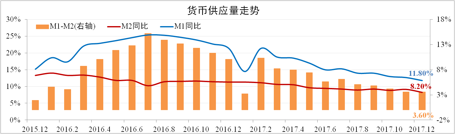 分析認為:金融機構持有的M2下降導致貨幣供應大幅收縮。一方面年底放貸額度受限,對存款需求上升;另一方面監管趨嚴使得資金供應不足。實(shí)體經(jīng)濟融資需求旺盛疊加央行春節定向降準,預計1季度貨幣供應將出現反彈。