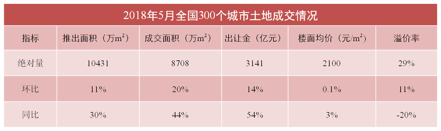 5月全國300城市土地市場(chǎng)總成交面積為8,708萬(wàn)㎡,環(huán)比增加20%,同比增加44%。其中,住宅用地成交面積3,110萬(wàn)㎡ ,環(huán)比增加18%,同比增加74%。土地溢價(jià)率為29%,較上增長(cháng)11個(gè)百分點(diǎn),同比收縮20個(gè)百分點(diǎn)。