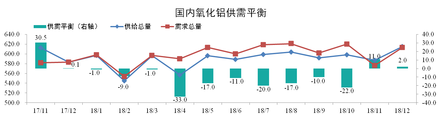 分析認為:12月礦石供應逐漸穩定,加之利潤驅使,氧化鋁產(chǎn)量有所增加,下游需求依舊疲軟,氧化鋁供給過(guò)剩。1月氧化鋁價(jià)格將下行至臨界點(diǎn),部分企業(yè)將出現適度減產(chǎn),但需求仍處弱勢,預估供給過(guò)剩。